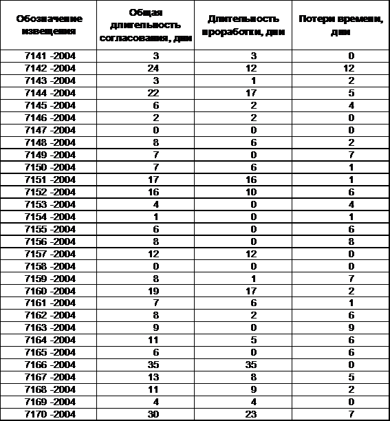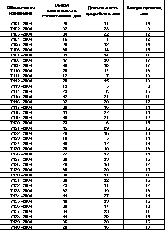 Длительность согласования КД в соответствии с СТП СМК 7.3‑03‑2003
