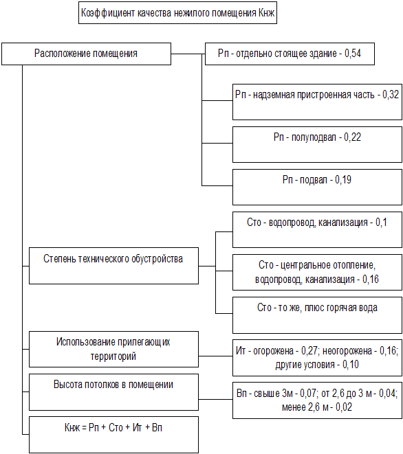 = 0,19 (подвал); К2 = 0,27 (наличие инженерных коммуникаций); К3 = 0,16