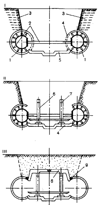 (рис. 2.8,а). После проходки опорных тоннелей и бетонирования опор