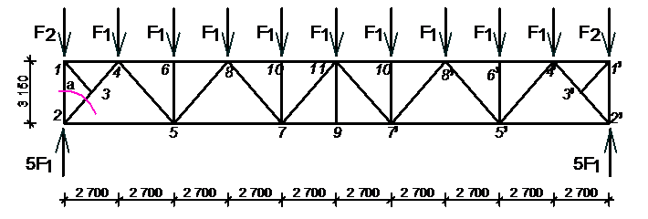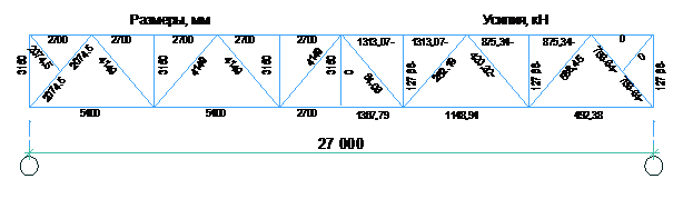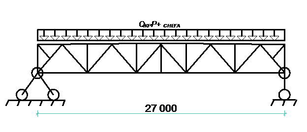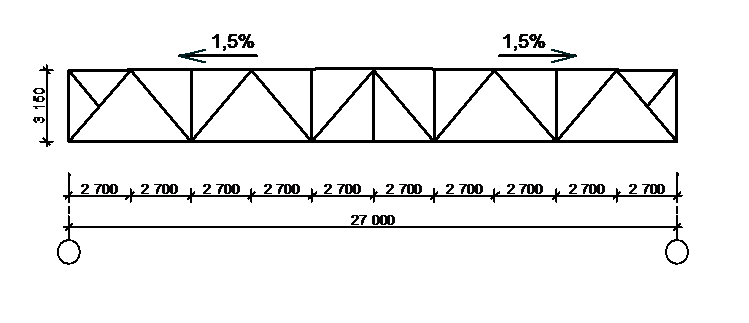 законструировать стропильную ферму покрытия пролётом 27 м. Шаг ферм 8 м,