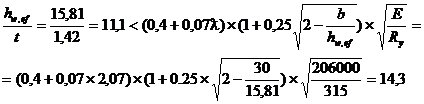 на пояс ( полка тавра) принимается толщиной 16мм, шириной