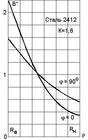 Рис. 2. Зависимости В*(r) в кольцевом сердечнике из стали