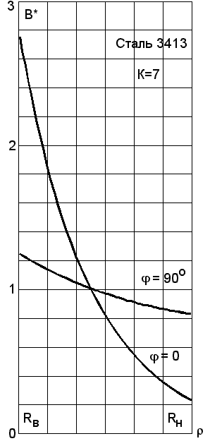 Рис. 3. Зависимости В*(r) в кольцевом сердечнике из стали
