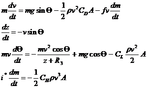 Qe=Q, ve=v, me=m, то есть параметры входа метероида.