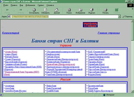 рода поисковая система банков СНГ и Балтии. Их столько много (банков)! Что