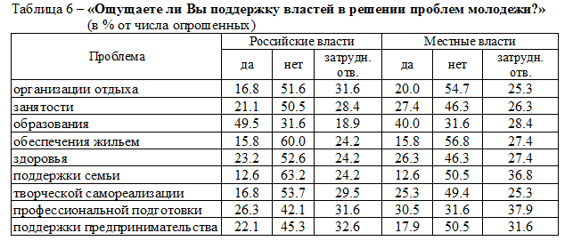 российских, и местных властей в решении проблем молодежи. На наш взгляд, это