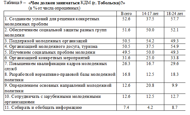 организовывать молодежный досуг, туризм, чуть меньше трети – устраивать