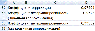 линейной аппроксимации) и коэффициента детерминированности. Результаты расчетов