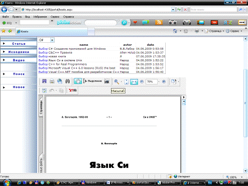 Информация предоставляемая пользователю: книги (данные в формате Acrobat
