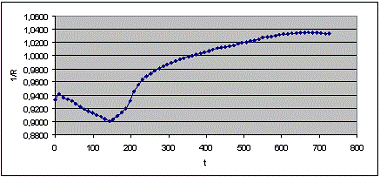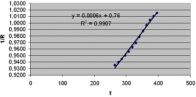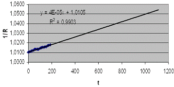 характером зависимости 1/R от t, который можно использовать в