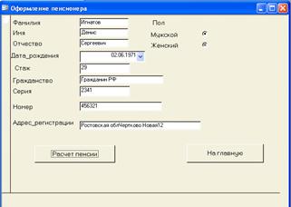 Разработка автоматизированного рабочего места инспектора по начислению пенсии