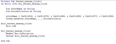 Рисунок Г.5 - Программный код кнопки «Расчет