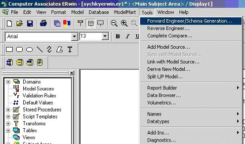 базу данных и выполнить команду Tools->Forward Engineer/Schema