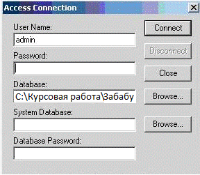 Рисунок 11 - Окно соединения с базой