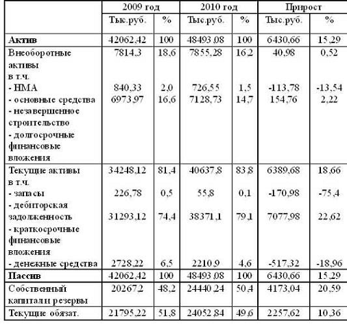 " на 31 декабря 2009-2010 гг., в тыс. руб.