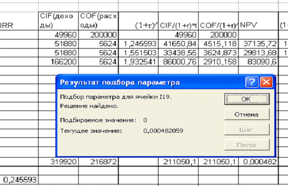 показателей при реализации проекта.