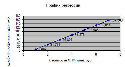 Параметр уравнения регрессии показывает a = - 18,40, что с увеличением стоимости ОФ увеличивается