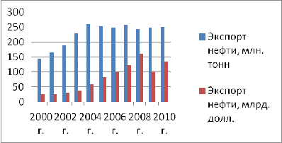 1. Экспорт Российской Федерации сырой нефти за 2000-2010 годы