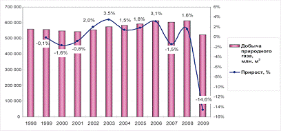 2. Экспорт Российской Федерации природного газа за 2000-2010 годы