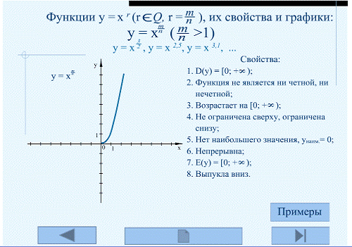 теме «Свойства степенной функции», содержащего динамические иллюстрации,