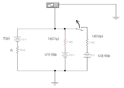I1r (p)= (E/p)/(1/(pC1*pC2/(1/pC1+1/pC2))+R)=