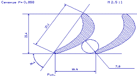 Полученное значение хорды превышает минимально допустимые значения: b=22,2 мм