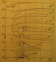 скоростей и решетки профилей. Полученные значения густоты решётки в области