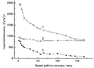Ее снижение в ходе работы сенсора (кривая 3 на рис. 3) было еще более
