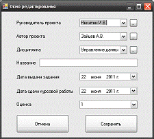 которое позволяет проводить учет курсовых работ, с возможностью добавления,