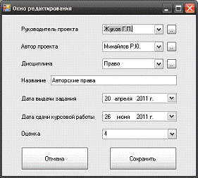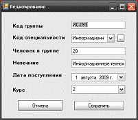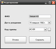 Рисунок 2.24 - Результат нажатия кнопки «Изменить запись» окна «Группа»