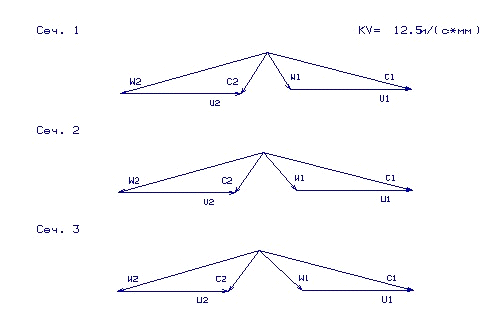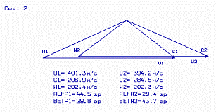 КВД были определены компоненты треугольников скоростей, а также геометрические
