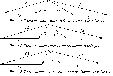 были определены компоненты треугольников скоростей в межвенцовых зазорах, а