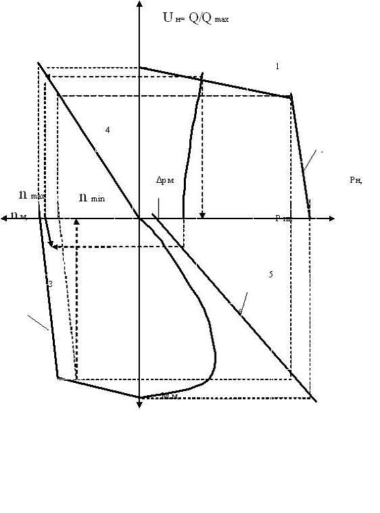 Рис. 9. Диаграмма режимов работы гидропередачи: 1 -