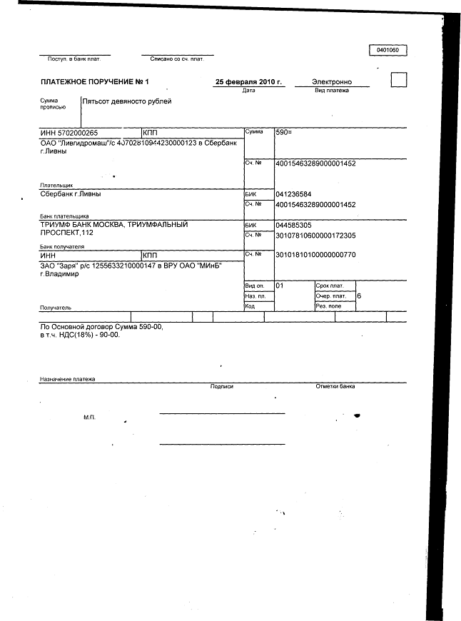 Документы бухгалтерского, налогового учета и отчетности кредиторской задолженности ОАО 'Ливгидромаш'