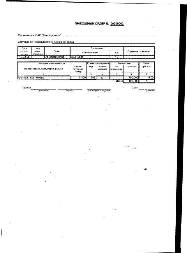 «Ливгидромаш» за 2006 - 2008 годы, первичные и сводные документы по