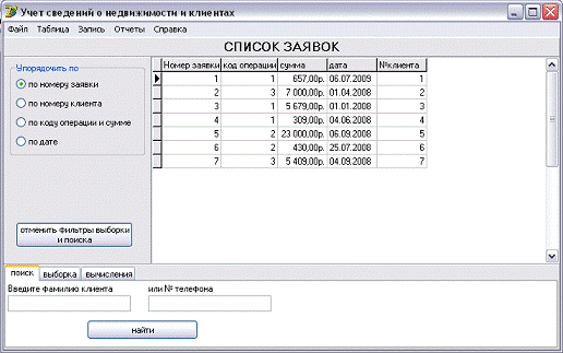 функции, и организована возможность поиска данных, их сортировки и выборки по