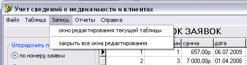 позволяет команда меню «Запись -> Окно редактирования текущей таблицы»