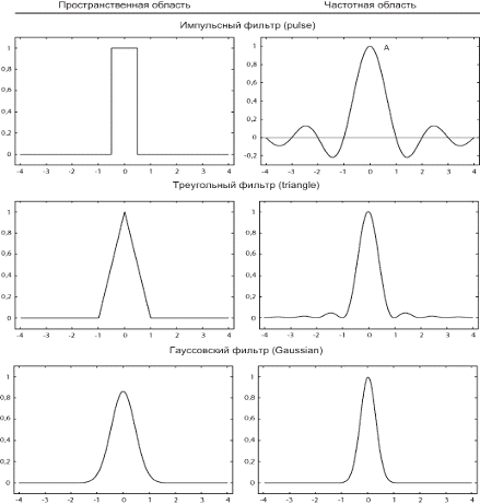 Таблица 1. Одномерные функции-фильтры для анти-алиасинга