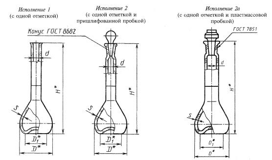 Цилиндры с пластмассовыми основаниями и пробками и колбы с пластмассовыми