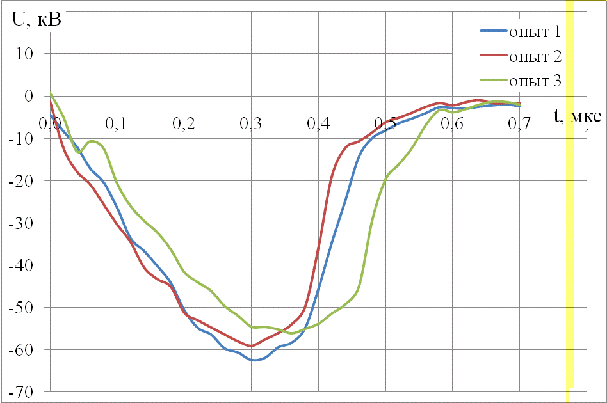 было установлено, что с уменьшением времени экспозиции импульсного напряжения