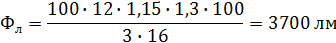 Возьмем для освещения помещения три лампы накаливания в светильниках с