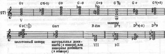 доминант, замен, альтерации и хроматизмов, параллелизма, проходящих ступеней,