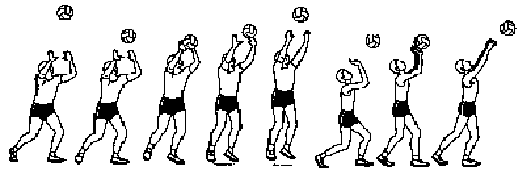 выполнению верхней передачи. В исходном положении ноги согнуты в коленях,