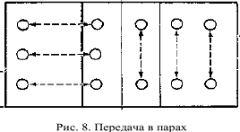 передачи в парах на различное расстояние, разные по высоте и скорости полёта мяча.