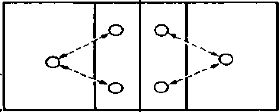 лицевой линии, двое других у сетки. Упражнение выполняют двумя мячами. Стоящие
