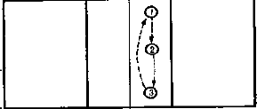 площадках. Мяч передается из зоны 6 в зону 3, из зоны 3 в зону 4, а из зоны 4 в