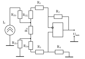 напряжение подается на вход усилителя с выходом по току. При этом напряжение на