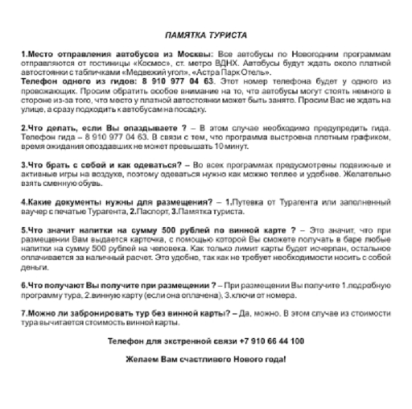Памятка для туриста