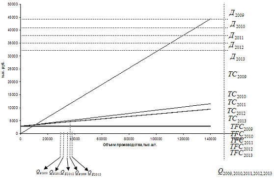 график безубыточности. Для этого рассчитаем минимальный объем производства, при