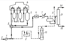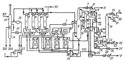 аппарат 1 с магистралями подвода нефтяного сырья, магистралями отвода выделенной